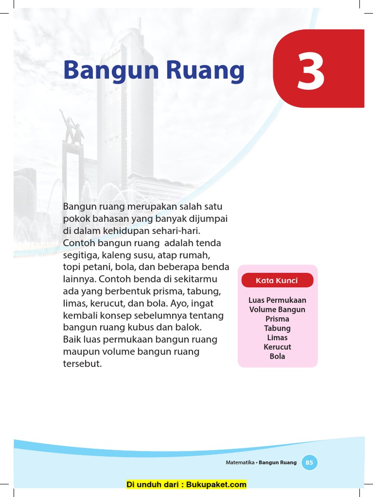 Rumus bangun ruang tabung, balok dan kubus.