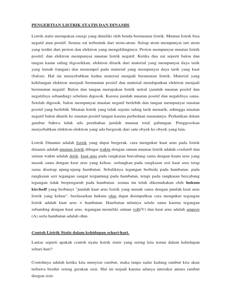 30+ Itu Listrik Statis Pengertian Dan. Listrik statis adalah listrik yang diam dan listrik dinamis adalah listrik yang bergerak / mengalir. Listrik statis adalah fenomena kelistrikan yang terjadi di mana partikel bermuatan ditransfer atau berpindah✅ dari.