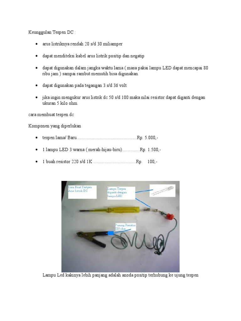 Hanya dengan beberapa langkah, kita dapat mengetahui apakah sebuah stop kontak listrik atau kabel listrik yang. Cara membuat tespen dc (polarity tester) dari tespen biasa untuk berbagai keperluan reparasi motortespen dc sangat membantu dalam berbagai penanganan. Para sobat bintangtop.com tentu sering mendengar alat listrik yang bernama testpen, biasanya alat ini digunakan oleh para teknisi listrik atau sekedar peralatan pelengkap di rumah kalian. Tersedia ✓ gratis ongkir ✓ pengiriman sampai di hari yang sama.